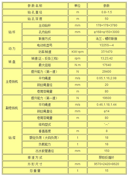 該機是一種組裝式轉盤鉆孔機,適用于高層建筑、橋梁、港口的大口徑灌注樁基礎施工,亦可用于大口徑水井和其它工程建筑基礎施工。